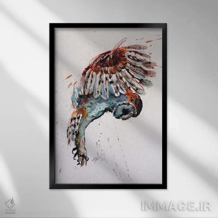 اگر به آثار حیوانات علاقه دارید، «جغد پرنده» اثرِ «آنا بریجیتا کوواچ» مثل یک امضای بامزه اما متین عمل میکند، برای راهروها و ورودیهای گرم گزینهٔ مناسبیست. به دیوار، قصه میدهد—اما قصهای آرام و شیک.