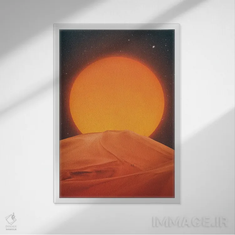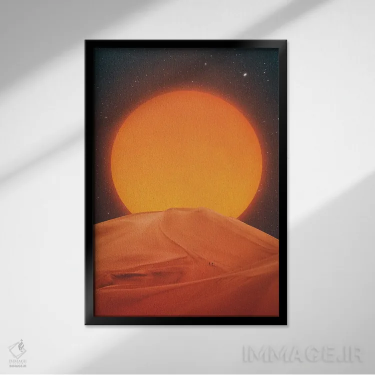 براساس پالت گرم اثر، قاب تیک گرم (چوبی) پیشنهاد اول است و مشکی مات (فریم متوسط) مکمل. برای سفارشهای پروژهای با ابعاد و قابهای اختصاصی با ایماژ در تماس باشید.