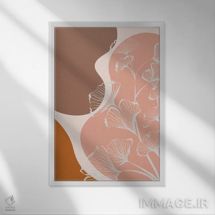 اگر دوست دارید دیوار روشنتر و آرامتر دیده شود، «اشکال آلی و برگهای جینکو» اثرِ «آلیسا گالیتسینا» فضا را نرمتر و مهماننوازتر میکند، برای نشیمنهای روشن گزینهٔ مناسبیست. در کنار گیاهان آپارتمانی، هماهنگتر هم میشود.