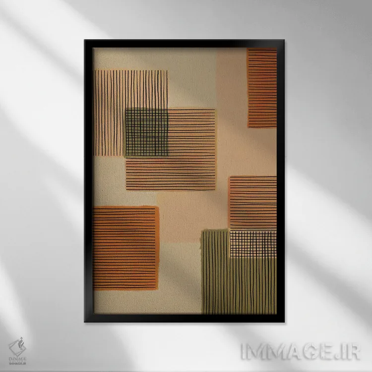 براساس پالت گرم اثر، قاب بلوط روشن (چوبی) پیشنهاد اول است و استخوانی ملایم مکمل. برای سفارشهای پروژهای با ابعاد و قابهای اختصاصی با ایماژ در تماس باشید.
