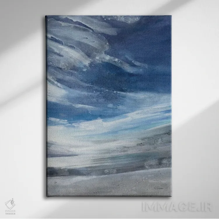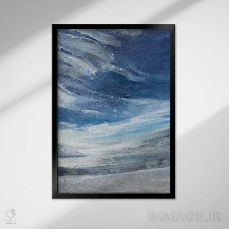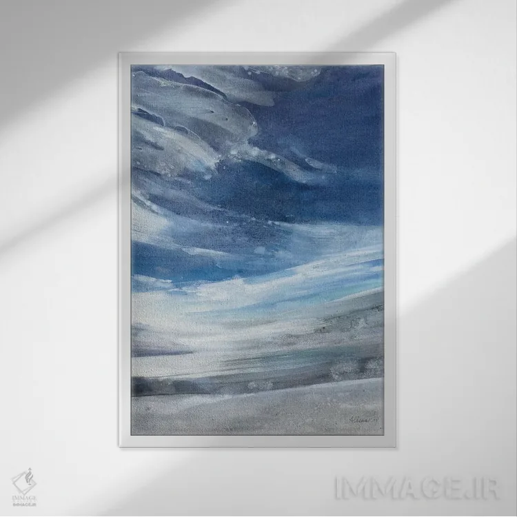 براساس پالت سرد اثر، قاب سفید مات (فریم باریک) پیشنهاد اول است و نقرهای برسخورده (متالیک) مکمل. برای سفارشهای پروژهای با ابعاد و قابهای اختصاصی با ایماژ در تماس باشید.