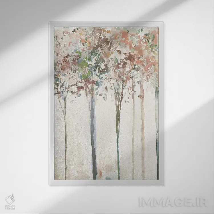 براساس پالت گرم اثر، قاب بلوط روشن (چوبی) پیشنهاد اول است و استخوانی ملایم مکمل. برای سفارشهای پروژهای با ابعاد و قابهای اختصاصی با ایماژ در تماس باشید.