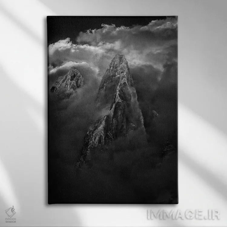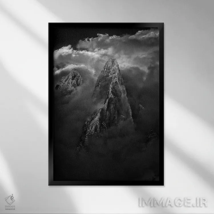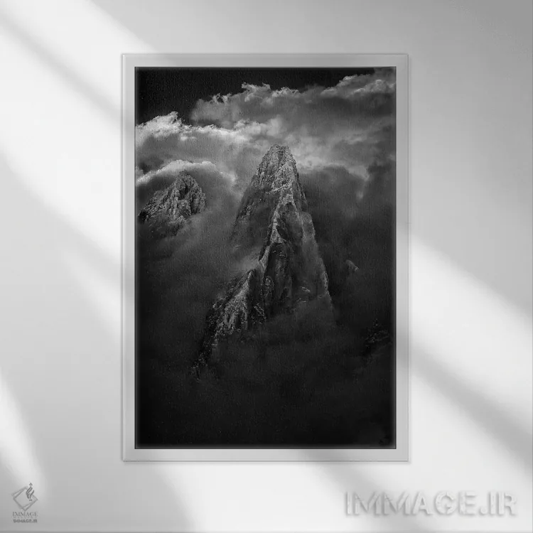 «هوای طوفانی، ایگوئی د درو، شامونی، اوت سووآ، اورنی—رون—آلپ، فرانسه» اثرِ «الکس بیوس» در فضای عکاسی سیاهوسفید، روی نور و کنتراست تکیه میکند؛ موضوعِ این اثر برای دکورهای مینیمال عالی است.