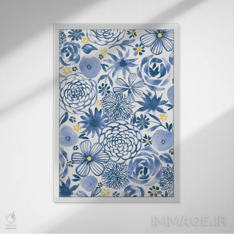 تابلو حال‌وهوای نیلی شش اثر آماندا مک‌گی - نمای قاب‌دار سفید