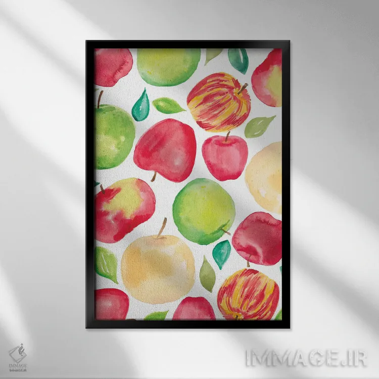 تابلو برداشت سیب پنج اثر آماندا مک‌گی - نمای قاب‌دار مشکی