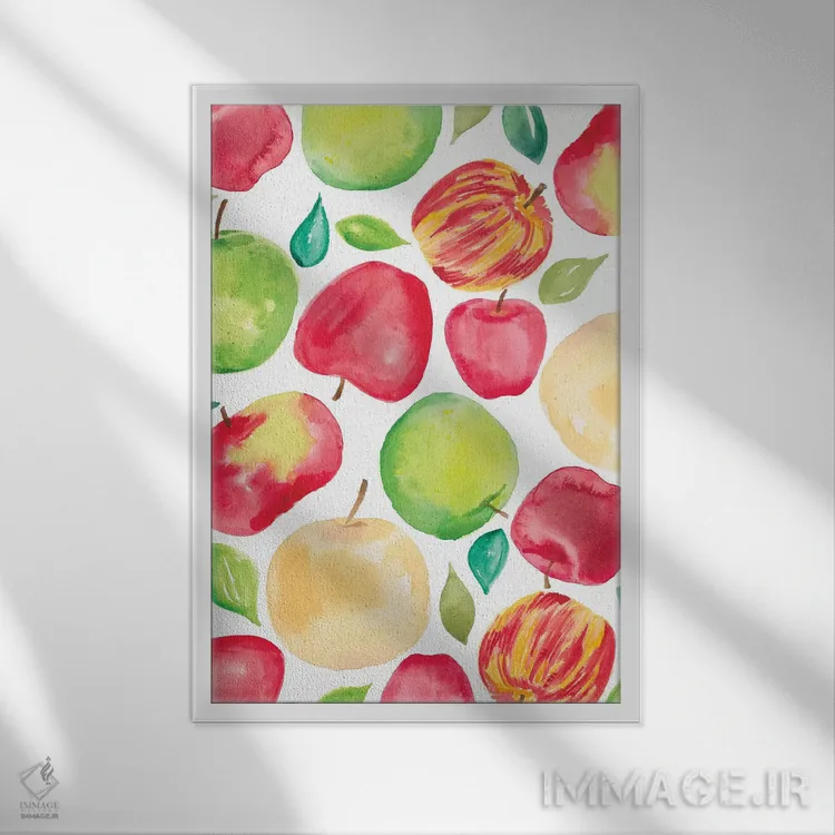 تابلو برداشت سیب پنج اثر آماندا مک‌گی - نمای قاب‌دار سفید