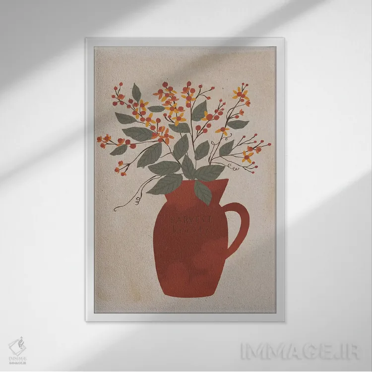 براساس پالت گرم اثر، قاب بلوط روشن (چوبی) پیشنهاد اول است و استخوانی ملایم مکمل. برای سفارشهای پروژهای با ابعاد و قابهای اختصاصی با ایماژ در تماس باشید.