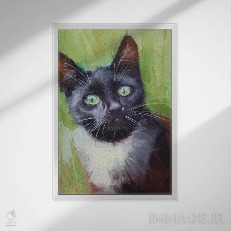 تابلو گربهٔ سیاه با گردن سفید اثر الکس مووچون