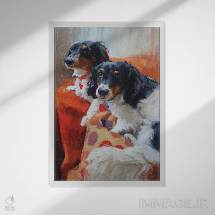 برای دکورهای صمیمی، «دو داشهوند (سگ)» اثرِ «الکس مووچون» در کنار رنگهای خنثی، تضاد دلچسبی میسازد؛ برای فضاهای روستیک یا بوهو انتخابی خوشسلیقه است. با قاب چوبی یا مشکی، حس مرتبتری پیدا میکند.