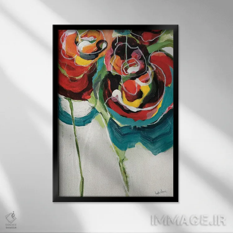 براساس پالت ترکیبی اثر، قاب تیک گرم (چوبی) پیشنهاد اول است و مشکی مات (فریم متوسط) مکمل. برای سفارشهای پروژهای با ابعاد و قابهای اختصاصی با ایماژ در تماس باشید.