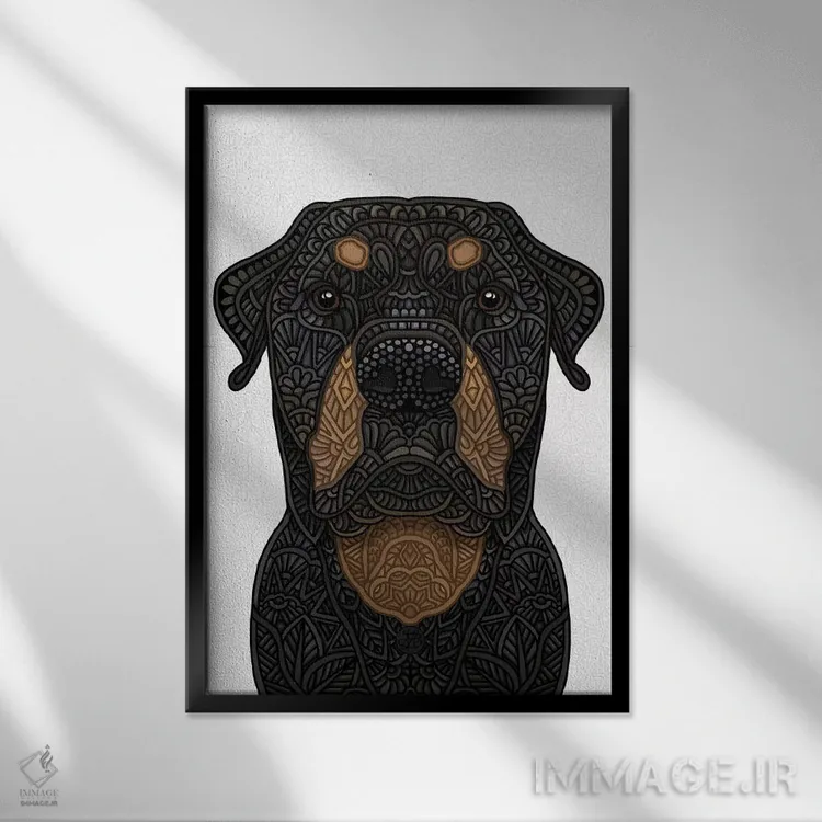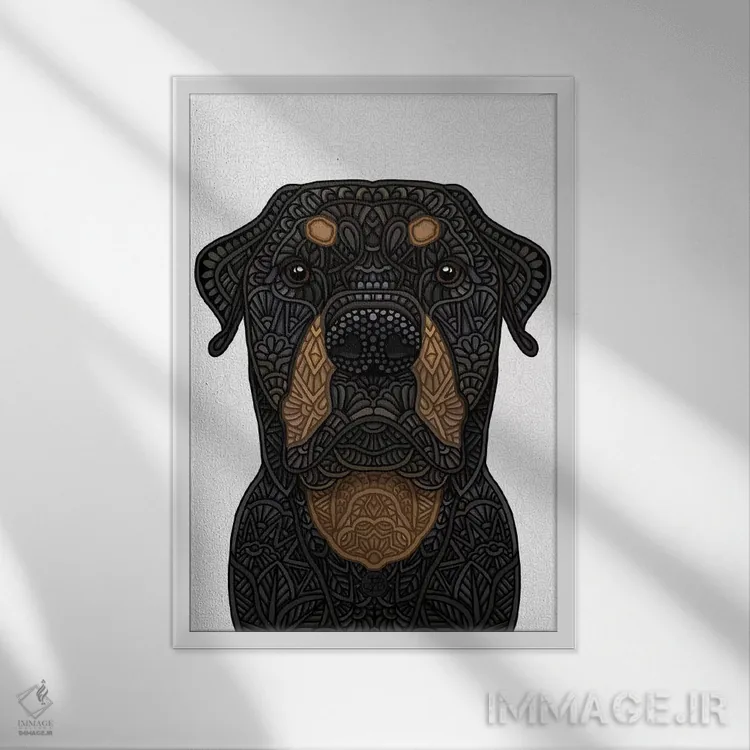 برای دیوارهای ساده، «روتوایلر (نژاد سگ)» اثرِ «آنجلیکا پارکر» یک لبخند ریز به چیدمان میدهد؛ برای اتاق بازی یا گوشهٔ مطالعه انتخابی خوشسلیقه است. هر بار نگاهش میکنید، یک جزئیات تازه به چشم میآید.