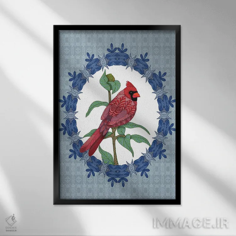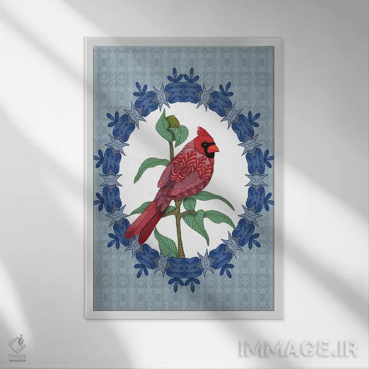 تابلو کارباورال آبی روشن کریسمس اثر آنجلیکا پارکر - نمای قاب‌دار سفید