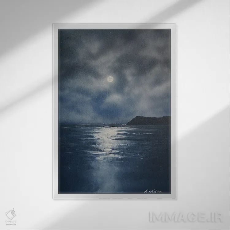 براساس پالت سرد اثر، قاب سفید مات (فریم باریک) پیشنهاد اول است و نقرهای برسخورده (متالیک) مکمل. برای سفارشهای پروژهای با ابعاد و قابهای اختصاصی با ایماژ در تماس باشید.