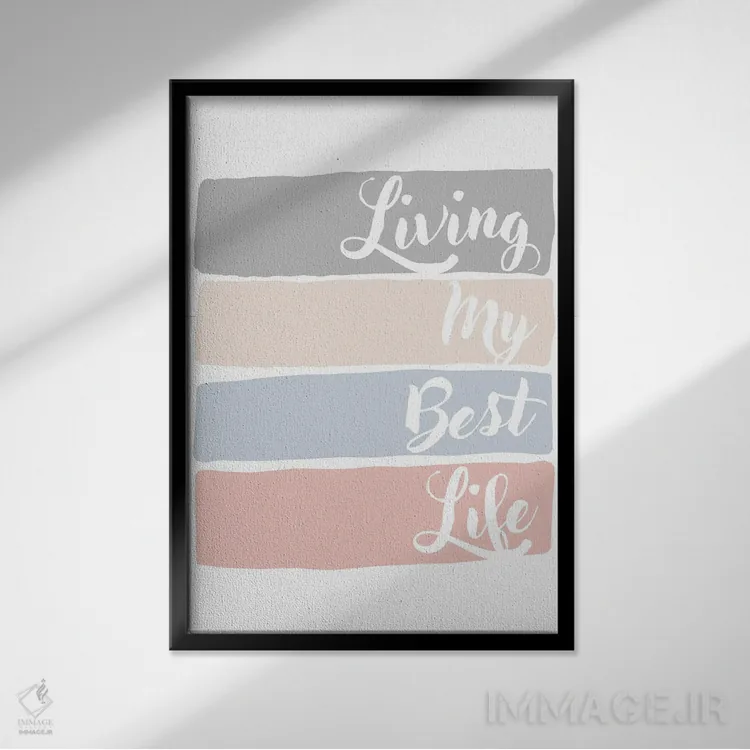 «بهترین زندگیام را دارم» اثرِ «آنا کوآچ» با تایپوگرافیِ کنترلشده، روی دیوار خوب مینشیند؛ برای کنار کتابخانه، میز کار یا راهروهای باریک عالی است.