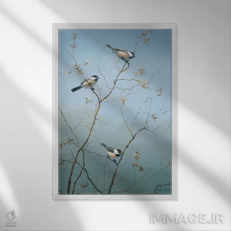 براساس پالت سرد اثر، قاب سفید مات (فریم باریک) پیشنهاد اول است و نقرهای برسخورده (متالیک) مکمل. برای سفارشهای پروژهای با ابعاد و قابهای اختصاصی با ایماژ در تماس باشید.