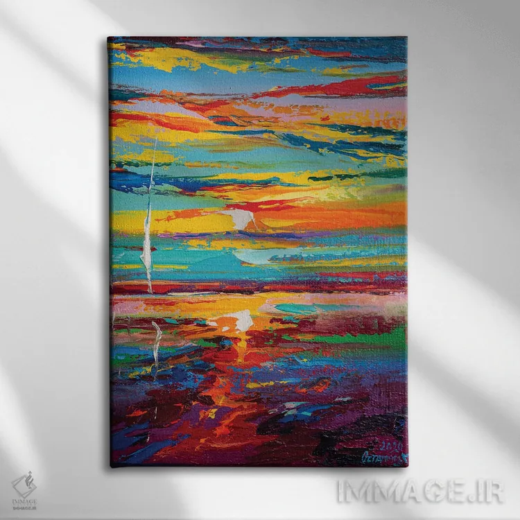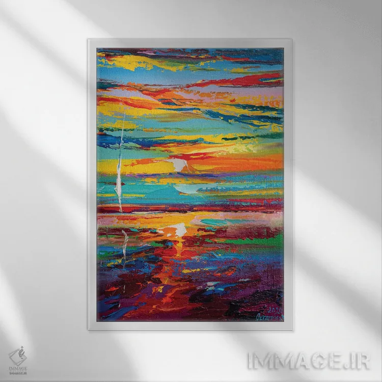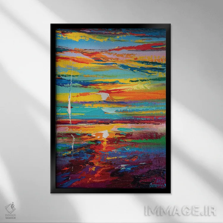 براساس پالت ترکیبی اثر، قاب تیک گرم (چوبی) پیشنهاد اول است و مشکی مات (فریم متوسط) مکمل. برای سفارشهای پروژهای با ابعاد و قابهای اختصاصی با ایماژ در تماس باشید.
