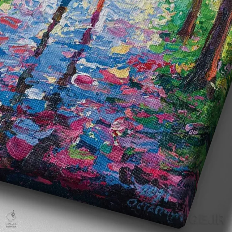 ساختار بوم گالری ایماژ طوری است که اثر روی دیوار «پرداختشده» و حرفهای دیده شود—نه پرزرقوبرقِ بیپایه؛ بلکه دقیق و خوشپرداخت. بافت ظریف کنواس کمک میکند حس اثر هنری را در نگاه نزدیک نگه میدارد بدون اغراق؛ فقط دقیقتر. در بافت ظریف کنواس، باعث میشود سطح کار زندهتر دیده شود. در نهایت، نتیجه چیزی شبیه تفاوت نسخهی معمولی با نسخهی باکیفیتتر است: نه رنگِ بیشتر، بلکه پرداخت بهتر؛ همراهِ نورپردازی درست، جلوهی گالریوار بیشتری حس میشود.
