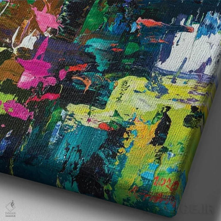 تابلو چشم‌انداز انتزاعی (نیلوفر آبی) اثر آندره اوستاپچوک - نمای نزدیک بافت بوم