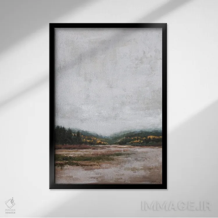 براساس پالت گرم اثر، قاب بلوط روشن (چوبی) پیشنهاد اول است و استخوانی ملایم مکمل. برای سفارشهای پروژهای با ابعاد و قابهای اختصاصی با ایماژ در تماس باشید.