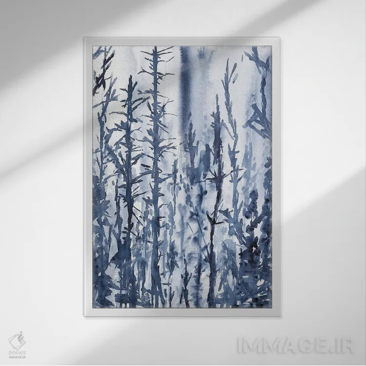 براساس پالت سرد اثر، قاب سفید مات (فریم باریک) پیشنهاد اول است و نقرهای برسخورده (متالیک) مکمل. برای سفارشهای پروژهای با ابعاد و قابهای اختصاصی با ایماژ در تماس باشید.