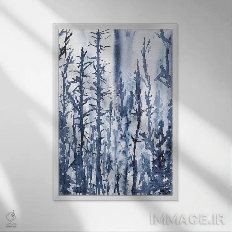 تابلو درختان مرموز آبی، منظرهٔ آبرنگ اثر آنا اوز