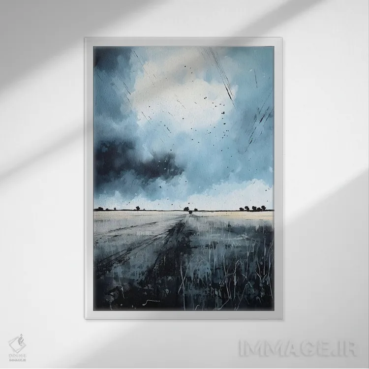براساس پالت سرد اثر، قاب سفید مات (فریم باریک) پیشنهاد اول است و نقرهای برسخورده (متالیک) مکمل. برای سفارشهای پروژهای با ابعاد و قابهای اختصاصی با ایماژ در تماس باشید.