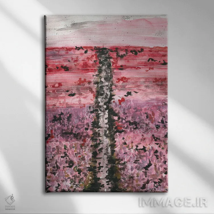 «دشت گلهای صورتی، منظره آبرنگ» اثرِ «آنا اوز» با رویکرد معاصر، برای دفتر کار و خانههای مدرن انتخابی مناسب است؛ موضوعِ این اثر هم هویت میدهد.