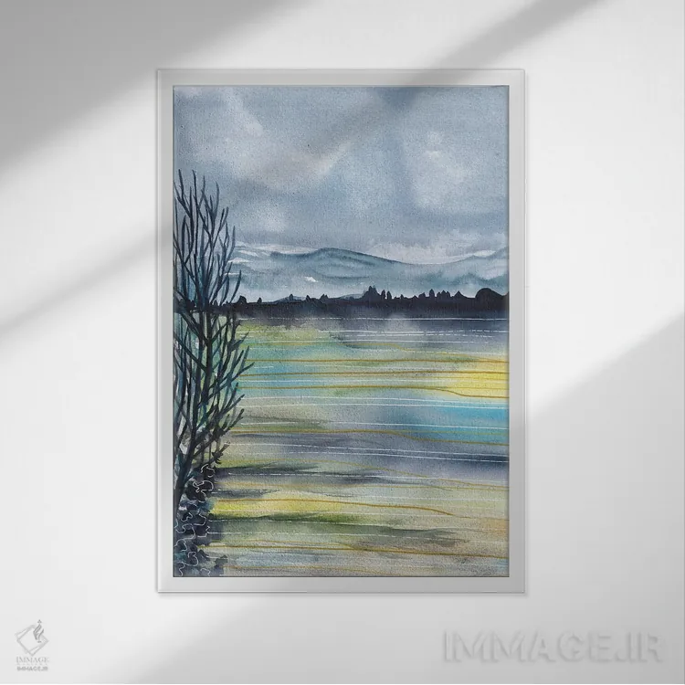 براساس پالت سرد اثر، قاب سفید مات (فریم باریک) پیشنهاد اول است و نقرهای برسخورده (متالیک) مکمل. برای سفارشهای پروژهای با ابعاد و قابهای اختصاصی با ایماژ در تماس باشید.