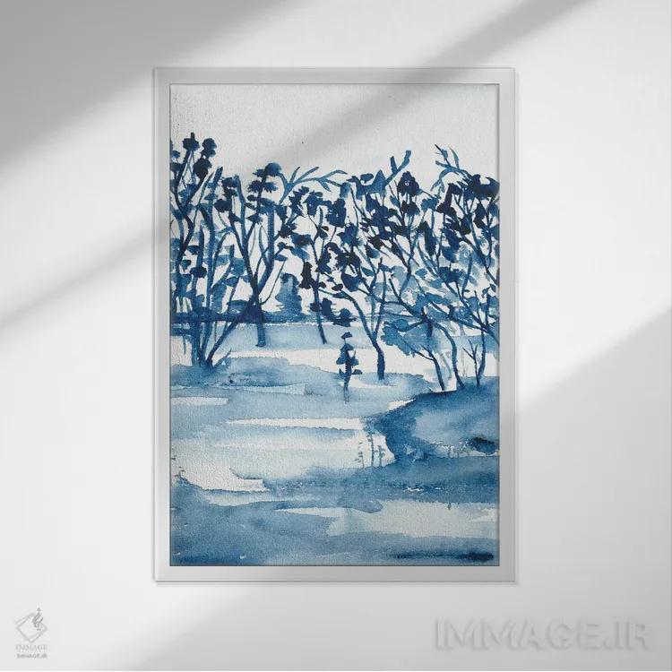 تابلو آبی روشن با آبرنگ اثر آنا اوز