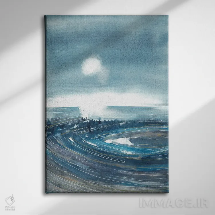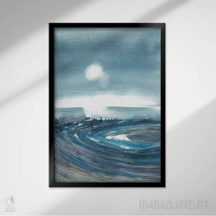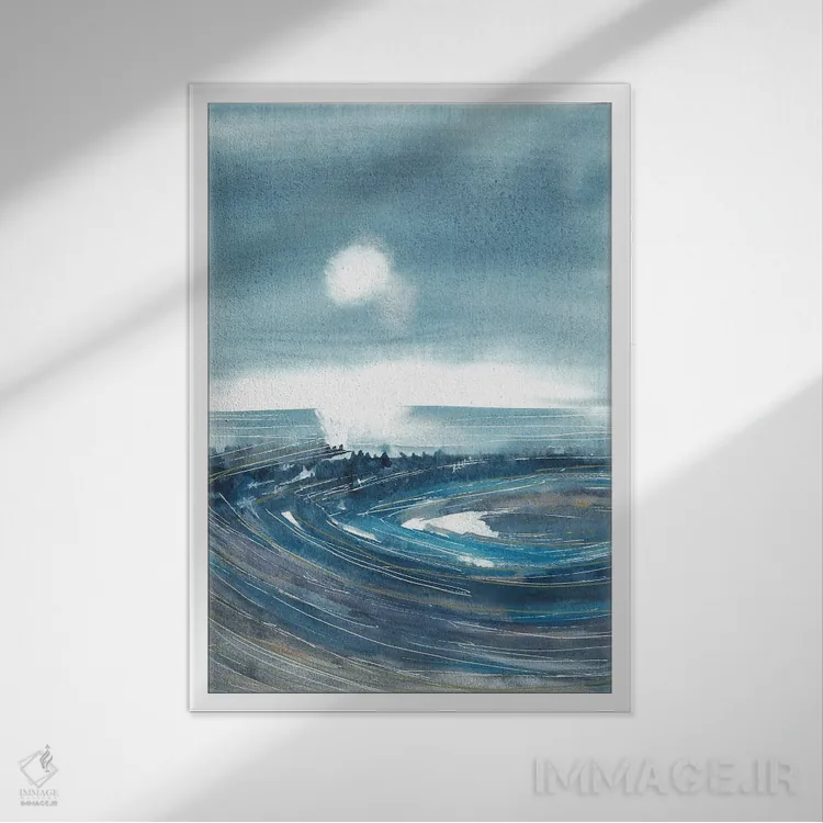 براساس پالت سرد اثر، قاب سفید مات (فریم باریک) پیشنهاد اول است و نقرهای برسخورده (متالیک) مکمل. برای سفارشهای پروژهای با ابعاد و قابهای اختصاصی با ایماژ در تماس باشید.