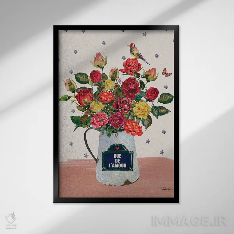 اگر دوست دارید دیوار روشنتر و آرامتر دیده شود، «کوچه عشق (Rue de l'Amour)» اثرِ «آنا پائولا هوپه» فضا را نرمتر و مهماننوازتر میکند، برای نشیمنهای روشن گزینهٔ مناسبیست. در کنار گیاهان آپارتمانی، هماهنگتر هم میشود.