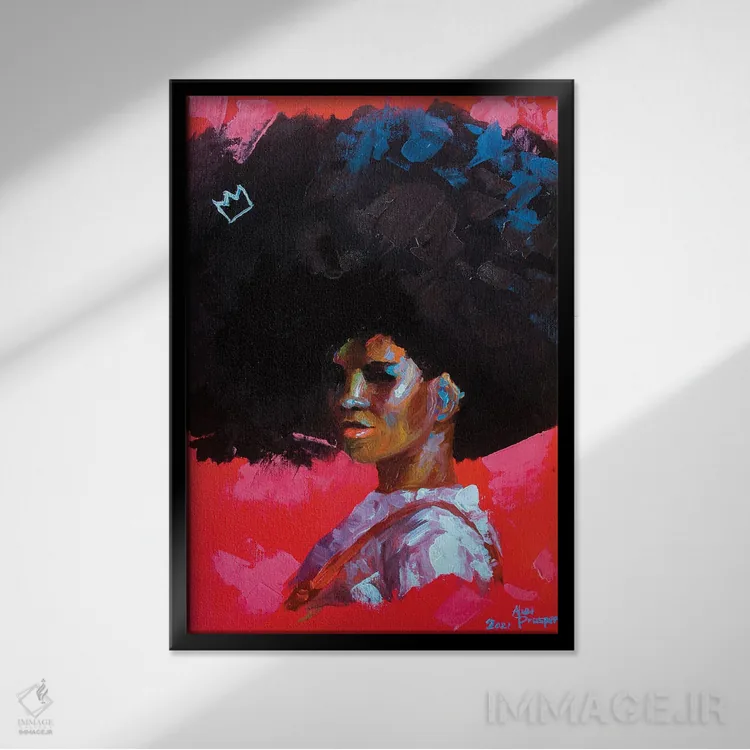 براساس پالت ترکیبی اثر، قاب تیک گرم (چوبی) پیشنهاد اول است و مشکی مات (فریم متوسط) مکمل.