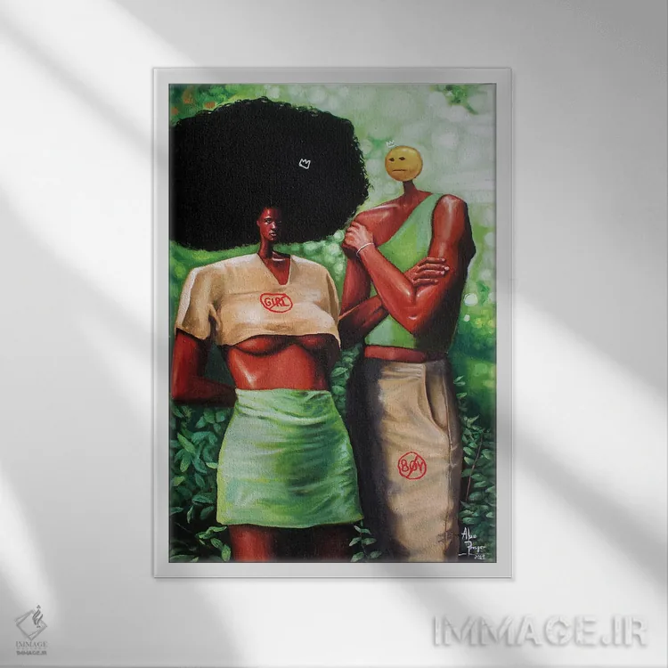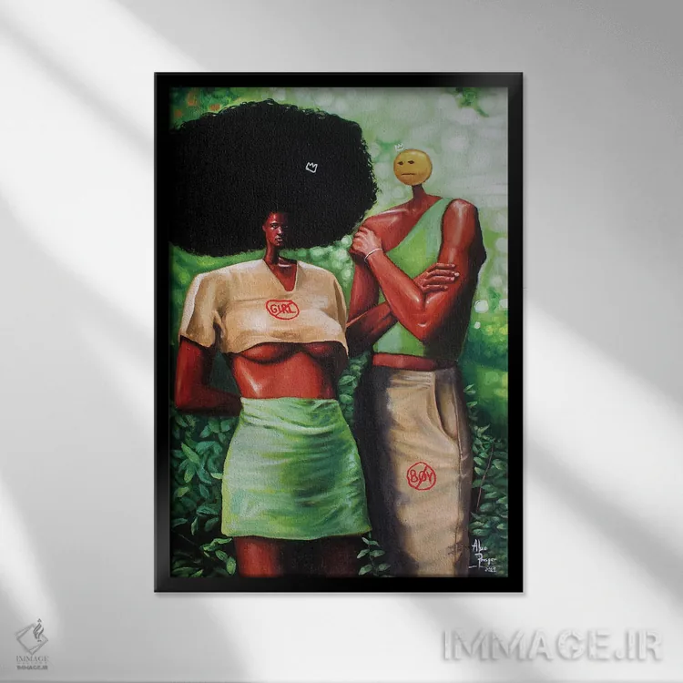 براساس پالت ترکیبی اثر، قاب تیک گرم (چوبی) پیشنهاد اول است و مشکی مات (فریم متوسط) مکمل. برای سفارشهای پروژهای با ابعاد و قابهای اختصاصی با ایماژ در تماس باشید.