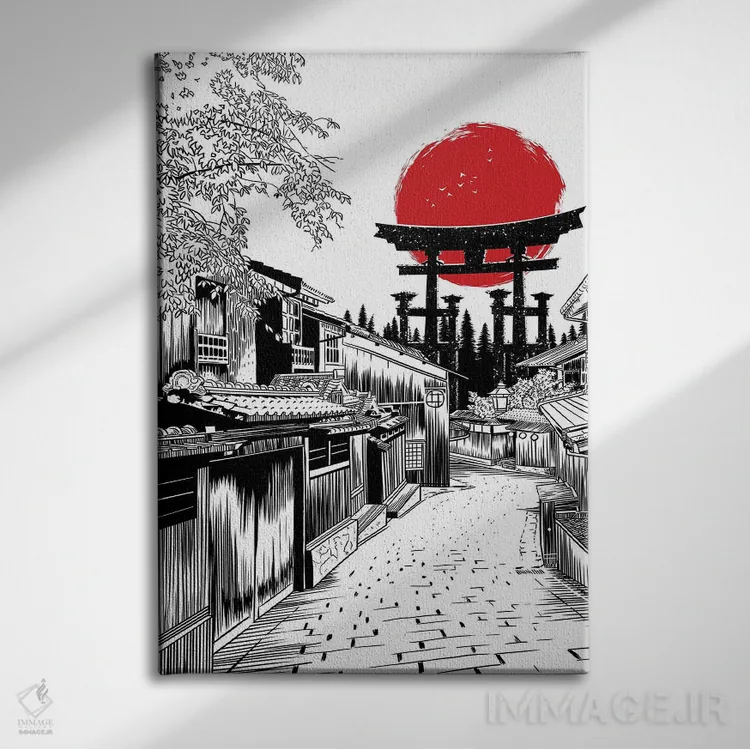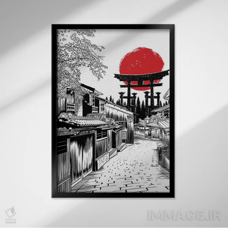 تابلو توریی خیابانی (دروازه ژاپنی) اثر آلبرتو پرز - نمای قاب‌دار مشکی