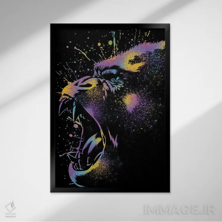 تابلو گوریل رنگارنگ اثر آلبرتو پرز - نمای قاب‌دار مشکی