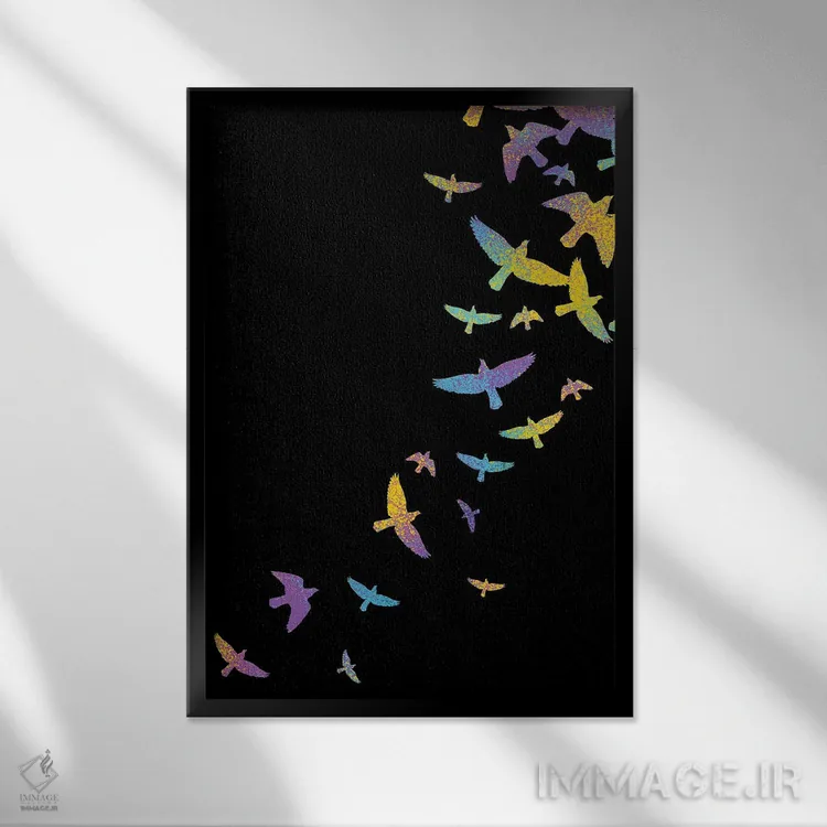 تابلو پرندگان رنگارنگ اثر آلبرتو پرز - نمای قاب‌دار مشکی