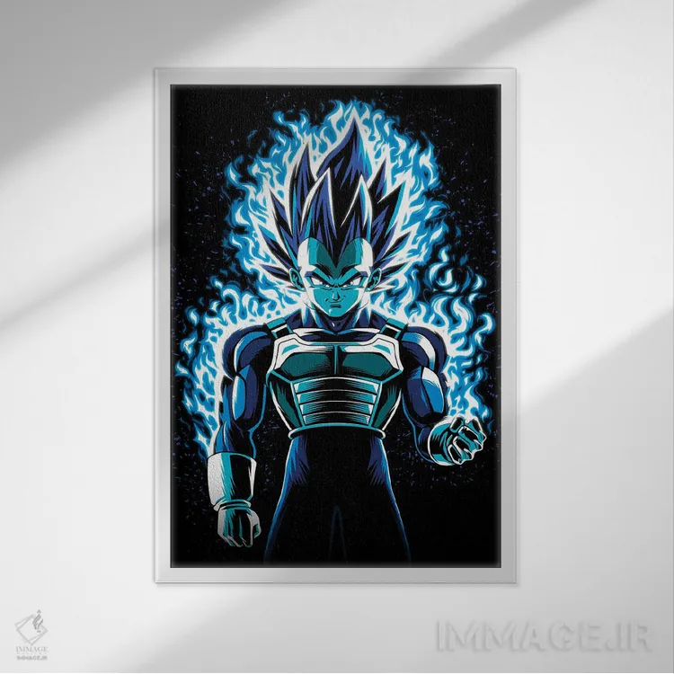 تابلو شاهزاده جنگجوی آبی فوق‌العاده اثر آلبرتو پرز - نمای قاب‌دار سفید