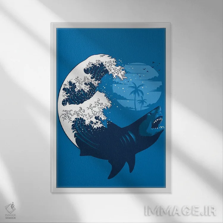 تابلو موج کوسه اثر آلبرتو پرز - نمای قاب‌دار سفید