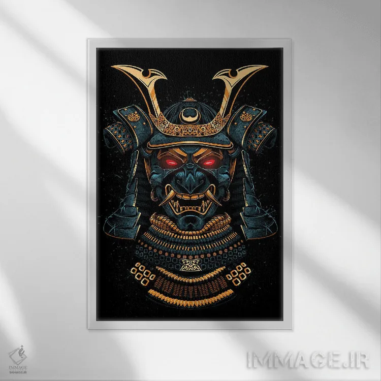 تابلو دکوراتیو نقاب سامورایی طلایی اثر آلبرتو پرز