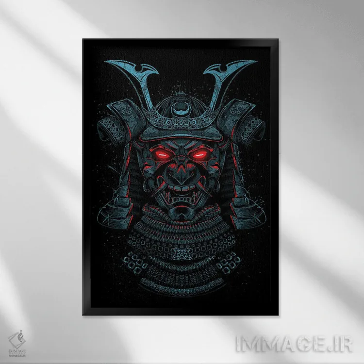 تابلو سامورایی با چشمان قرمز اثر آلبرتو پرز - نمای قاب‌دار مشکی