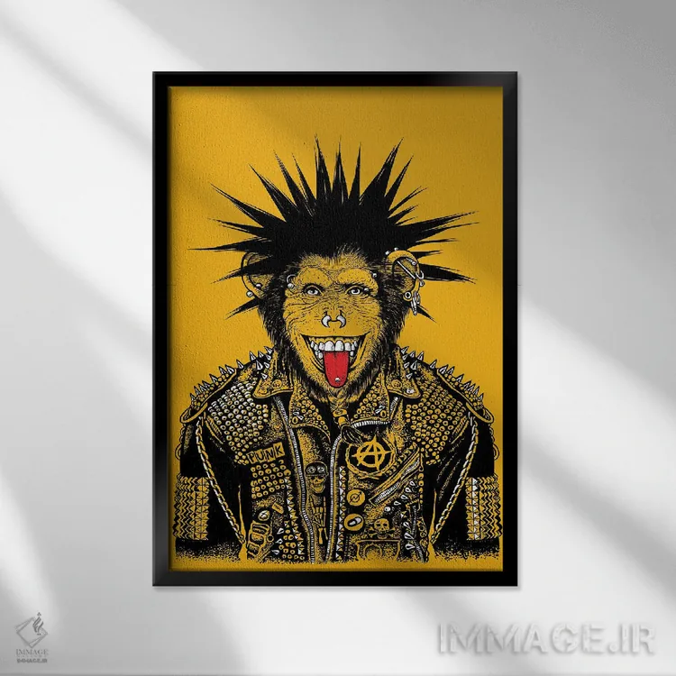 تابلو شامپانزه پانکی اثر آلبرتو پرز - نمای قاب‌دار مشکی