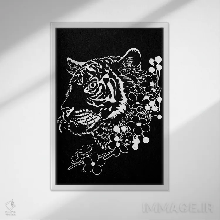 برای اتاق خواب و نشیمنهای آرام، «ببر با خطوط سفید مینیمال» اثرِ «آلبرتو پرز» تعادل رنگیِ لطیفی به چیدمان میدهد؛ برای راهروهای مینیمال انتخابی خوشسلیقه است. با قاب روشن یا چوبی، حس طبیعیتری پیدا میکند.