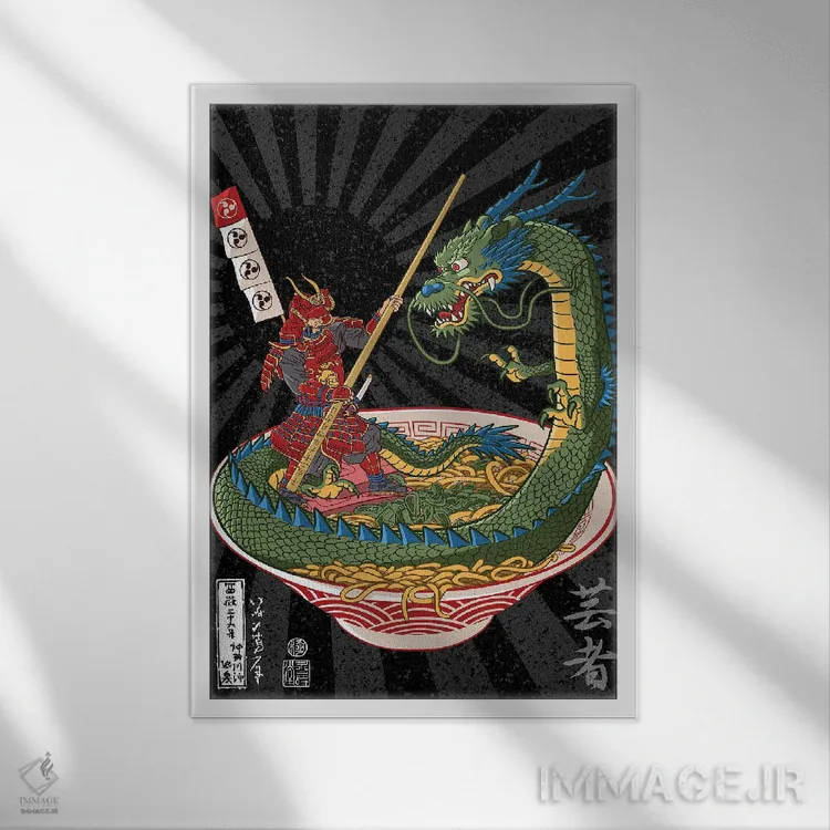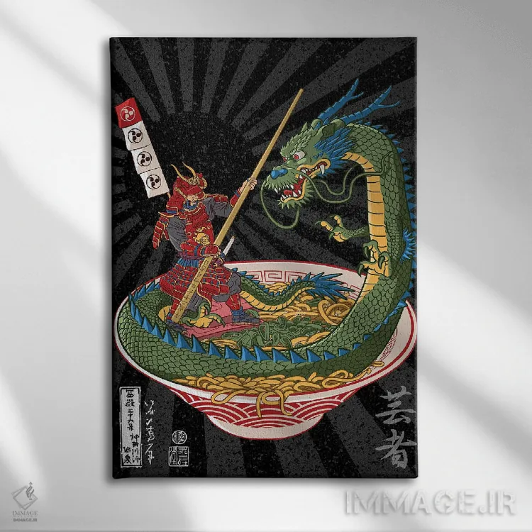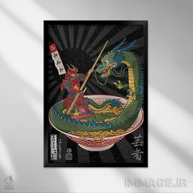 تابلو دکوراتیو نبرد سامورایی با اژدها بر سر رامن اثر آلبرتو پرز