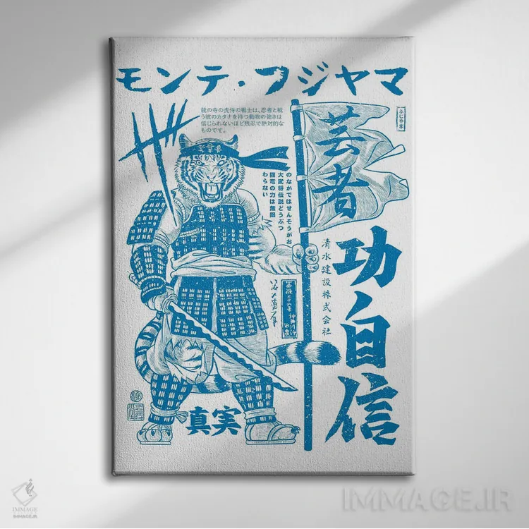 تابلو دکوراتیو ببر سامورایی جنگجوی کانجی اثر آلبرتو پرز