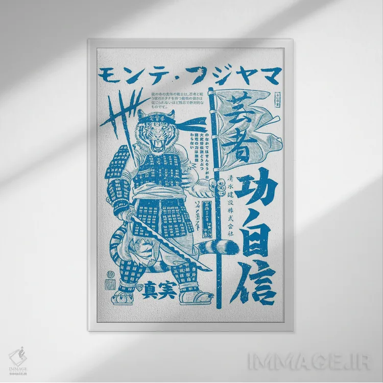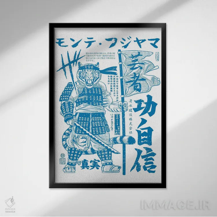 «ببر سامورایی جنگجوی کانجی (خط ژاپنی)» اثرِ «آلبرتو پرز» یک قاب مدرن و خوشفرم است؛ موضوعِ این اثر در اجرای هنری خوانا و سئوپذیرِ دیواری میشود.