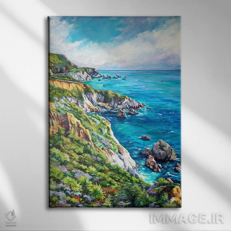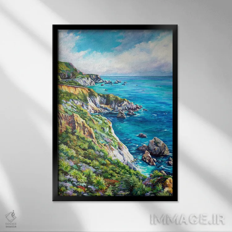 «بیگ سور (ساحل مشهور آمریکا)» اثرِ «جان کلارک» با رویکرد هنری و موضوعِ این اثر، حسِ گالریوار و مرتب به فضا میدهد؛ مناسبِ پذیراییهای کلاسیک و معاصر.