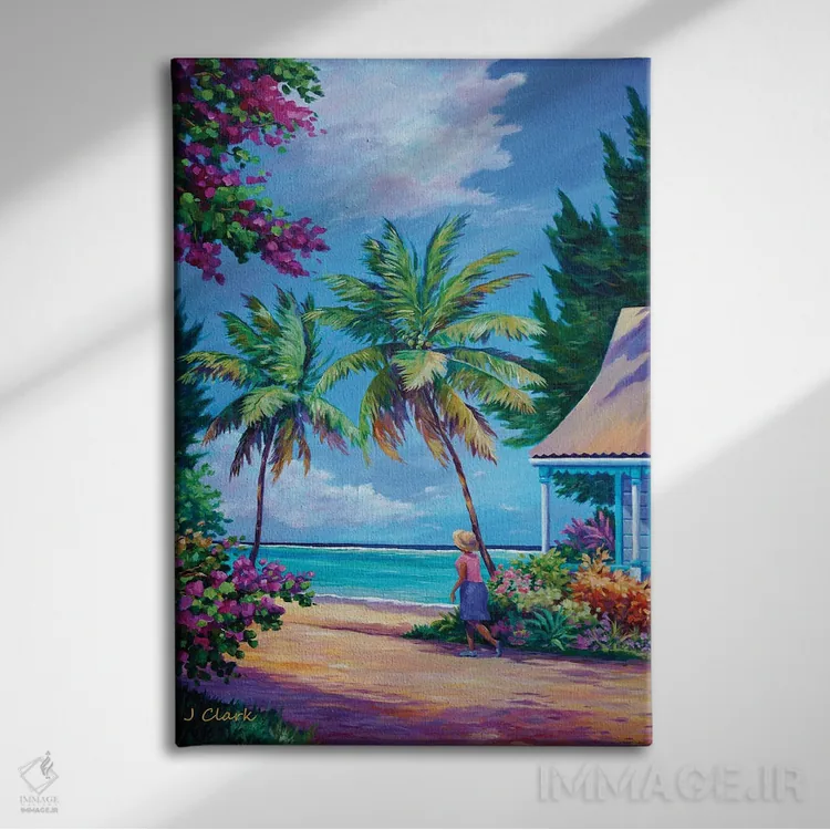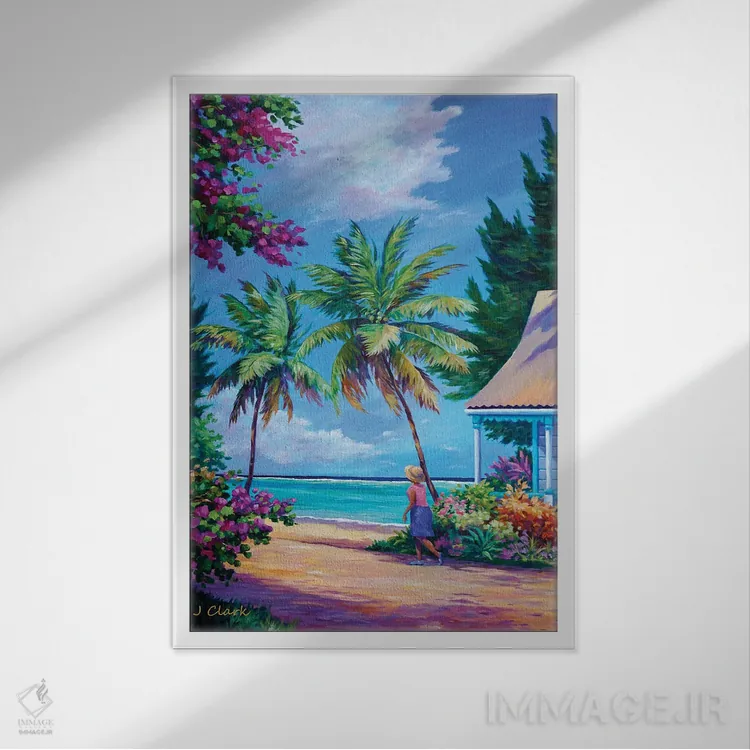 «رفتن به خانه پیاده» اثرِ «جان کلارک» در فضای دکور ساحلی، کنار پارچههای روشن و اکسسوریهای طبیعی (حصیر/چوب) عالی هماهنگ میشود.