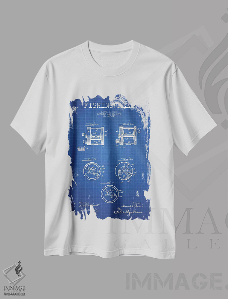 طرح پتنت چرخ ماهیگیری ساموئل ال. بین (شبکه آبی) (Samuel L. Bean Fishing Reel Patent Sketch (Blue Grid))