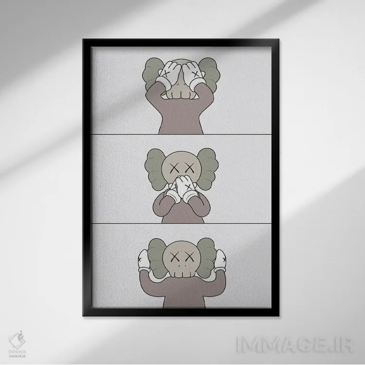 «نه ببین، نه بگو، نه بشنو (ضربالمثل)» اثرِ «آویسیکس» برای چیدمانهای صنعتی یا مدرنِ شهری هم مینشیند؛ چون تصویر، واضح و امروزی است.