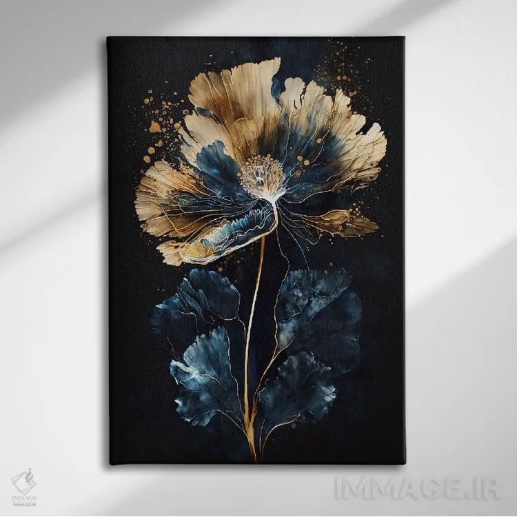 تابلو دکوراتیو نقاشی گل آبی و طلایی شیک اثر آرسی بسی